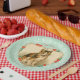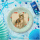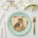 Adorable Viktorianisch Calico Kätzchen mit Herz und Pinsel. Der Hintergrund ist pastellfarbenes Aqua mit Spitzen wie Herzmuster. Kleines Herz Akzente in hellgrün und Korallen. Anpassen mit einem Namen oder einem anderen Text, oder löschen, wenn Sie möchten.