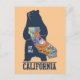 California Bären Postcard, Vintag Golden Staat Motto Travel Map Design.