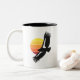 Diese Tasse zeigt einen kalifornischen Kondor mit einer gelben, orangefarbenen und roten Untergrundsonne. Diese majestätischen Vögel sind auf den Thermalquellen hoch über den Klippen des Grand Canyon, Zion National Park, Arizonas Vermilion Cliffs, Südkalifornien und anderen Orten im Südwesten der USA zu sehen.