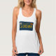 Travel back in time to the year 1969 with this retro-inspired California license plate design. Bold embossed-look yellow text with the custom tag number "CA DREAMN" pops on the blue contrast. The vintage style lettering, tag stickers and panhead screws bring a nostalgic vibe. This scoop neck tank top is the perfect casual statement piece for beach days, weekend adventures, and everyday coastal life.