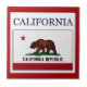 Eine grafische kalifornische Flagge Design mit dem Text California auf einer Kachel.