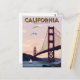 Celebrate the beauty of the Golden State with this stunning California postcard featuring the iconic Golden Gate Bridge at sunset. With soft pastel skies, soaring seagulls, and a peaceful sailboat below, this design perfectly captures California’s coastal charm and adventurous spirit. Ideal for travelers, collectors, and anyone who loves the West Coast.