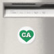 Dieser Magnet hat ein grünes Herz, das die fett-, weiß-, Großbuchstaben CA enthält, die offizielle Abkürzung für Kalifornien, den goldenen Staat.