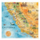 California Illustrated Watercolor Map Art Fotodruck