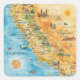 California Illustrated Watercolor Map Art Quadratischer Aufkleber