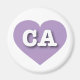 Dieser Magnet verfügt über ein Lavendelherz mit den fett-, weiß-, Großbuchstaben CA, der offiziellen Abkürzung für Kalifornien, dem goldenen Staat.
