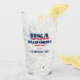 Kaliforniens personalisiertes Glas. Ein lebendiges Typografie-Design, das Kaliforniens Bedeutung in der amerikanischen Geschichte unter Verwendung fett gedruckten Textes und der Farben der amerikanischen Flagge zeigt. Personalisieren Sie das Glas vorne und hinten mit Ihrem Namen in der Vorlage.