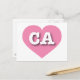 Auf dieser Postkarte befindet sich ein cooles rosa Herz mit den fett-, weiß-, Großbuchstaben CA, der offiziellen Abkürzung für Kalifornien, dem goldenen Staat. Die Rückseite der Postkarte ist leer und wartet auf Ihren personalisierten Text oder Ihre handgeschriebenen Gefühle.