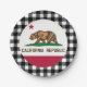 Paper Teller: Rustikale kalifornische Party-Teller mit kalifornischer Flagge umgeben von schwarz-weiß Büffel karierte Muster - Liebe mein Land, festliche Dekoration, nationale Patrioten / Sportfans