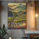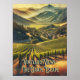 Der Weinberg zeigt die Weinflut. Mit diesem bezaubernden Plakat, das den Panoramablick auf ein sonnenverwöhntes Tal in üppigen Weinbergen bietet, gelangen Sie ins Herz des kalifornischen Weinlandes. In den goldenen Farbtönen der sanften Hügel, wo sich die Weinberge endlos unter der warmen kalifornischen Sonne erstrecken. Lass dieser malerischen Szene, die die Ruhe und Schönheit der berühmten kalifornischen Weinberge weckt
