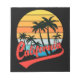 California Notizblock mit einem Retro-Design, das einen Sonnenuntergang und Palmen auf schwarzem Hintergrund (anpassbare BG-Farbe). Dieses Design hat auch Kalifornien in einem handgeschriebenen Schriftart mit einem Swash-Schwanz-Glyphe für diesen stilvollen Retro-Look. Dieses Notizblock ist nur für Sie, wenn Sie aus Kalifornien oder Sie können als Geschenk oder Andenken für jemanden erhalten.