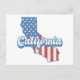 Die Postkarte bietet Silhouette des kalifornischen Staat mit Retrostil und patriotischen Sternen & Streifen füllen.