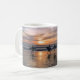 Die Iconic Huntington Beach "Surf City" Fotografie zeigt Trio von Surfern mit Silhouette gegen Ozean, Pier und Sonnenuntergang.