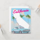 California Vintager Stil Vacation Poster mit einem alten Stil der 80er Jahre Car vor einem Hintergrund von Palmen im Abend und eine Karte des Staat.