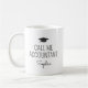 A clean modern Call Me Accountant mug with custom name. Great for CPAs, bookkeepers, auditors, and financial professionals. Perfect for tax season morale, appreciation gifts, or office desk decor.