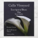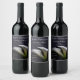 Calla lickt auf ein Set mit dem dunklen Hintergrun Weinetikett