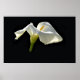 Eine weiße Calla-Lilie auf schwarzem Hintergrund wird hinterbeleuchtet und zeigt durchsichtige Blätter.