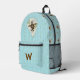 Callie die Pisley-Karettschildkröte schwimmt durch das flache Wasser der Lagune, die sie Zuhause nennt und sucht nach ihrem nächsten Imbiss. Ein Muster schwacher Algen auf einer blassblauen Basis schafft einen schönen Rahmen für die süße Meeresschildkröte. Passen Sie die Initialen auf der Vordertasche dieses Rucksacks mit Ihrem eigenen Monogramm an, um dieses Zubehör einzigartig zu machen.