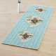 Callie die Pisley-Karettschildkröte schwimmt durch das flache Wasser der Lagune, die sie Zuhause nennt und sucht nach ihrem nächsten Imbiss. Ein Muster schwacher Algen auf einer blassblauen Basis schafft einen schönen Rahmen für die süße Meeresschildkröte.