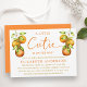 Moderne Kalligraphie-Schrift, elegante Wasserfarben Orangen Eine kleine Süsse ist auf dem Weg Orange und Gold Baby Dusche Einladung