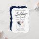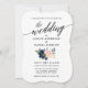 Calligrafie Script Blue Pink Floral Wedding Einladung