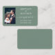 Moderne trendige Kalligrafie Script Wedding Registry Insert Card. Foto an der Vorderseite. Sage Green