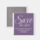Kalligrafie Speichern Sie das Date Magnet in lila und weiß mit einem ausgeklügelten typografischen Design. Diese elegante und schicke speichern Sie den Datums-Magneten ist einfach, um Ihre Hochzeitsdetails anpassen. Klicken Sie für weitere Anpassungsoptionen auf die Schaltfläche Anpassen.