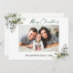 Moderne Minimalistische Elegance Kalligraphie Tinte Handgeschriebenes Skript Merry Christmas Foto Holiday Card beinhaltet Elegant Watercolor Greenery, Eukalyptus Blätter & Holly Berries. Grünes Skript.