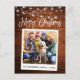 Moderne Fun Calligraphy Script, Sofortkamera Style Foto Frohe Weihnachtspostkarte - Rustikales Land Holz mit String Lights