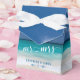Kalligrafisches Hochzeitsgeschenk für den Strand (Zelt-Gunst-Box mit weißem Band) mit individualisierbarem Text - Sie können den Namen der Braut und des Bräutigams und das Hochzeitsdatum hinzufügen.