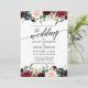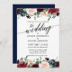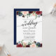 Calligraphy Burgundy Bloral Blue Wedding Einladung