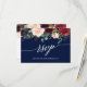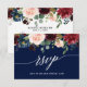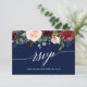 Calligraphy Burgundy Floral Blue Wedding RSVP Meet Karte