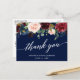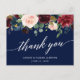 Moderne elegante Kalligraphie, Watercolor Burgundy Marsala Blue Floral Wedding Danke Postcard