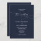 Calligraphy Elegant QR Code Navy Blue Wedding Einladung