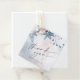 Ein handgeschriebener, signierter Schriftart kombiniert mit einer modernen Sans Serif wird in dieser Briefmarkensammlung zum Set eines warmen und intimen Tons für Ihre Hochzeit verwendet. Das Gastgeschenk Hochzeit-Etikett hier zeigt eine elegante Kalligraphie, "danke", Ihre Namen und Ihr Hochzeitstag mit einer Eckleiste von üppigen Blume und Blättern in den Schattierungen von staubblauem bis zartem Rosa. Die Rückseite hat einen einfachen Aquarellhintergrund in staubigen Blautönen. Durchsuchen Sie ID771 um weitere Teile und Farboptionen für dieses Set zu sehen.