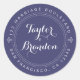Moderne, rustikale und schicke Hochzeitskalligraphie mit klassischem Rundaufkleber mit dem Text der Zukunft Mr. und Mrs. in weißer, eleganter Schrift-Kalligraphie auf marinebasischem Hintergrund mit dekorativen Details. Fügen Sie einfach Ihren Namen und Ihre Adresse hinzu. Exklusiv für Sie entworfen von Happy Dolphin Studio. Wenn Sie Hilfe oder passende Produkte benötigen, kontaktieren Sie uns bitte unter happydolphinstudio@outlook.com. Wir helfen Ihnen gerne, Ihre Hochzeit zum schönsten Tag zu machen!