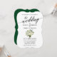 Calligraphy Green White Floral Bouquet Wedding Einladung