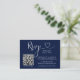 Moderne Kalligraphie Herzschrift Minimalistisch Einfache Hochzeitskarte mit QR Code. Navy Blue Background. Foto zurück.