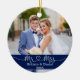 Calligraphy Heart Mr. and Mrs. Wedding Foto Blue Keramik Ornament