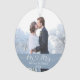 Moderne Minimalistische Einfache Kalligraphie Script Mr. und Mrs. Heart Bride und Groom Hochzeit Foto Ornament mit Schneeflocken zurück. Dusty Blue