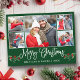 Modern Fun Calligrafy Script 5 Foto Couple Foto Collage Frohe Weihnachtskarte enthält Watercolor Christmas Holly Berries - Forest Green Background