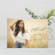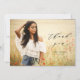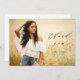 Dieser hübsche Abschluss Dankeschön-Karte verfügt über ein volles Foto und moderne Kalligraphie. Das schwarze Texteüberlagerungswort enthält die Phrase "danke", die in elegantem Schriftsatz geschrieben ist, mit dem Namen des Absolventen und dem Abschluss Jahr unten. Die Typografie überlagert ein volles horizontales Foto des neuen Abschlusses. Sie können auf Wunsch zusätzliche Fotos und/oder eine benutzerdefinierte Meldung auf der Kartenrückseite hinzufügen.