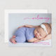 Celebrate the arrival of your little one with this calligraphy pink welcoming baby announcement card. The design features refined handwritten typography, a baby photo and a clean layout, which captures the beauty of simplicity. The flowing script headline “welcoming” adds a gentle, heartfelt touch that's perfect for announcing your newborn’s name, birth date, weight, and time. This card complements any aesthetic from modern chic to classic understated elegance.