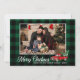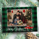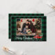 Eine wunderschöne rustikale Art, grün kariert - tartanische Urlaubskarte mit einem Vintagen, mit Bäumen beladenen Aquarell, mit Kalligraphie-Skript "Frohe Weihnachten", Ihrem Familiennamen, Jahr oder anderem Text und Ihrem Foto. Personalisieren Sie Ihre Nachricht auf der Kartenrückseite für die perfekte Touch.