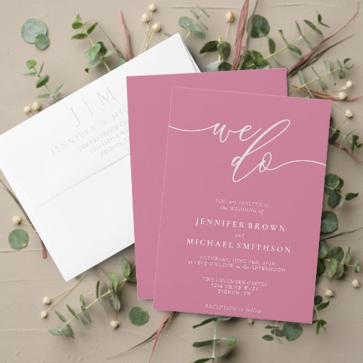 Calligraphy Simple Wedding Pink Tone All In One Einladung