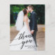 Moderne Kalligrafie Hochzeitbricht und Groom Foto Overlay Danke Postcard - Schwarze Schrift