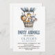 Make your little one’s first birthday truly unforgettable with this cute invitation, featuring a lion, giraffe and elephant wearing party hats while enjoying a ride in a hot air balloon. Perfect for inviting friends and loved ones to join in the joy of your baby’s special day, this charming design sets the tone for a sweet and memorable celebration. A variety of paper types and corner styles are available for your unique invitations, along with the option to download if you prefer a digital format.