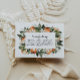 Diese Bücher für die Babykarte sind mit Aquarellorangeblüten und lustigem kursiven Schriftart ausgestattet. Diese Karte hat einen vollständig bearbeitbaren Wortlaut.