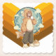 character wearing a cute, full-body pufferfish. They have wavy brown hair and a faceless aesthetic, holding a warm mug of coffee.