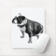 A seated bulldog that quietly steadies the space. The mood feels grounded and composed.